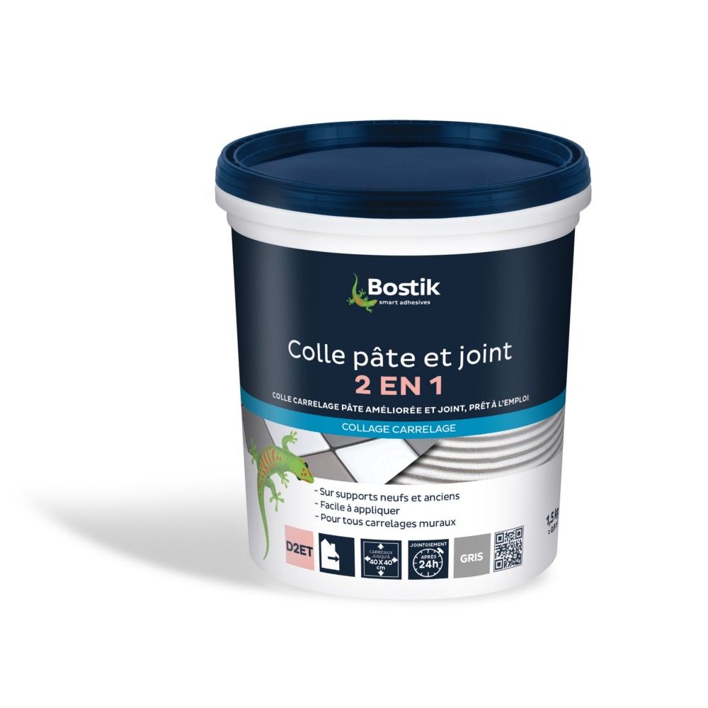 Colle et joint à carrelage en pâte 2 en 1 gris Bostik 1,5 kg
