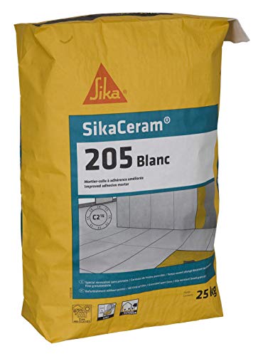 SIKA - Mortier-Colle à carrelage classé C2-ET - SikaCeram 205 Blanc - Intérieur et Extérieur - Carreaux de toutes porosités - Résistant au glissement - 25kg
