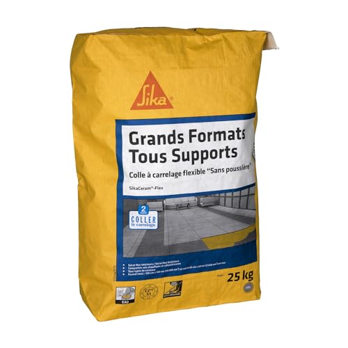 SIKA - Colle à carrelage flexible - SikaCeram 250 Super Flex Gris - Sans poussière spécial très grand format (10000cm²) - Mur et sol intérieur et extérieur - 25kg