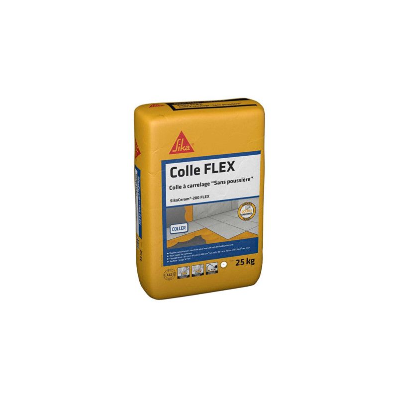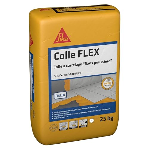SIKA - Colle à carrelage à double consistance sans poussières - SikaCeram 200 FLEX Gris - Tous types de carreaux (3600cm² max) - Murs et Sols - Intérieur et Extérieur - 25kg