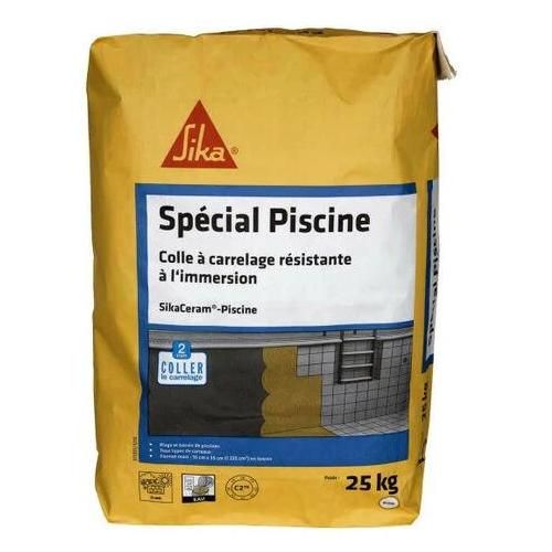 SIKA - Colle à carrelage extérieur spéciale piscine (classe C2-ET) - SikaCeram Piscine Blanc - Résistante à l'immersion - Facilité de pose murale - 25kg