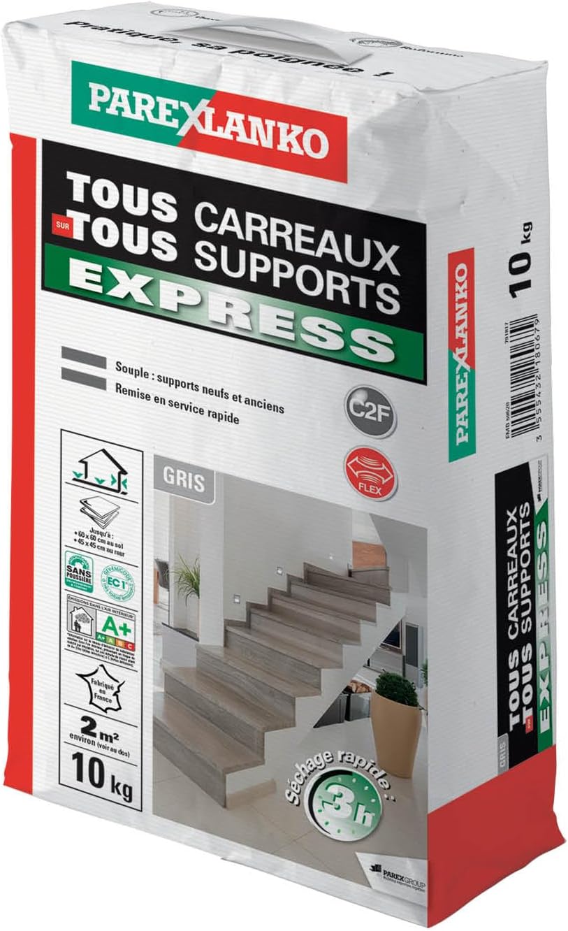 Colle carrelage à séchage rapide Tous Carreaux Tous Supports Express Gris Neuf et rénovation Adhérence haute performance 10kg