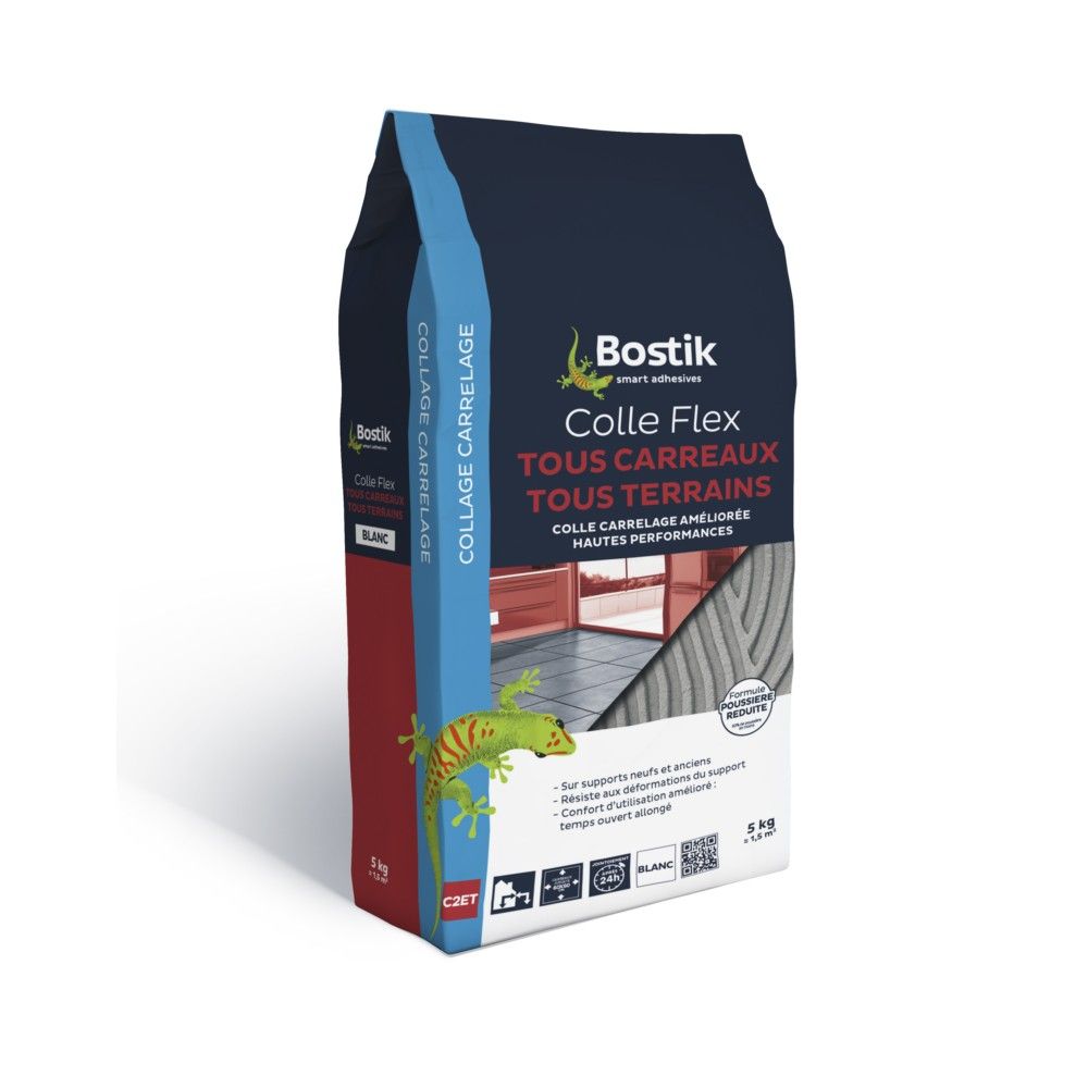Colle à carrelage améliorée flex tous carreaux tous terrain blanc C2ET Bostik