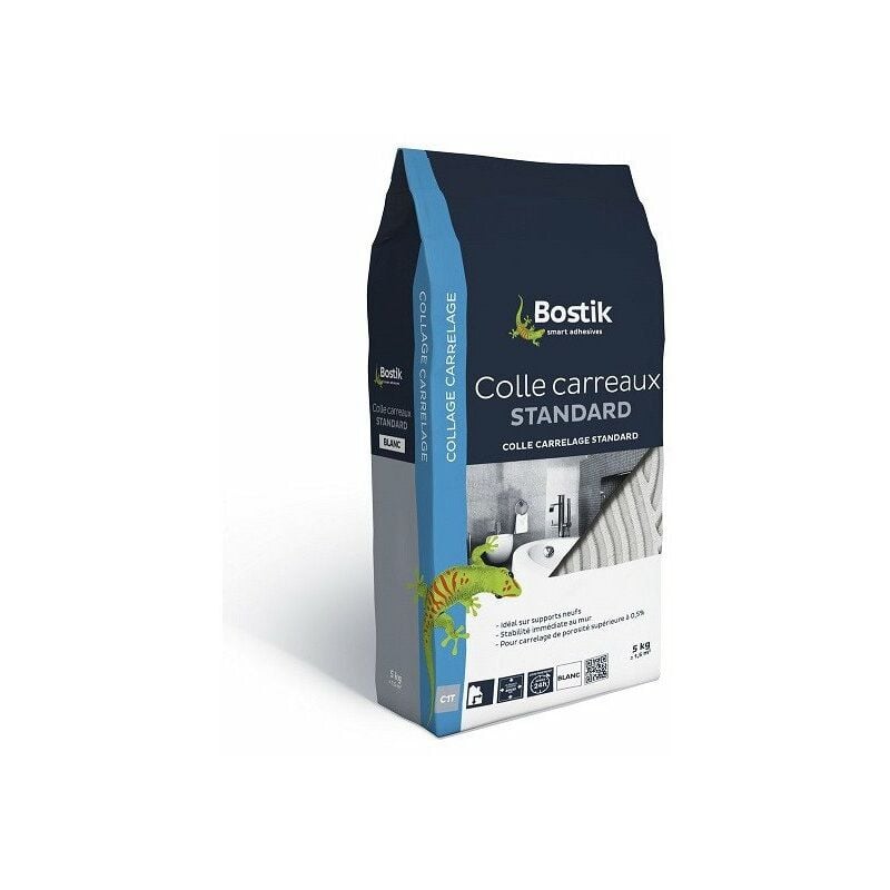 Bostik – Colle pour carrelage en poudre 5 kg – Pour sols et murs intérieurs – Porosité supérieure à 0,5% – Supports : mortier, béton, plaques de