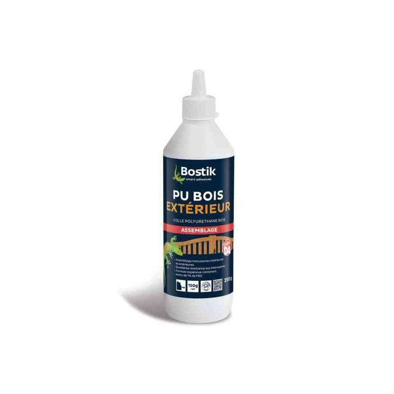 Bostik Colle à Bois Polyuréthane Exterieur D4 PU - Biberon de 250 g, Blanc