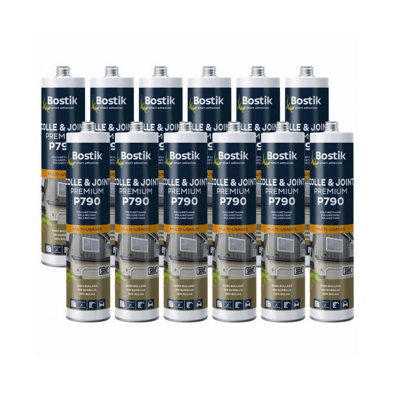 Bostik – Lot de 12 mastics polyuréthane FLEXPRO PU790 300ml – Colle pour béton, bois, métal – Technologie anti-coulure – Couleur noir