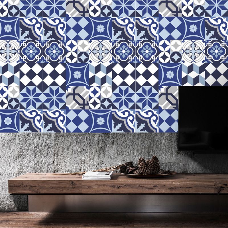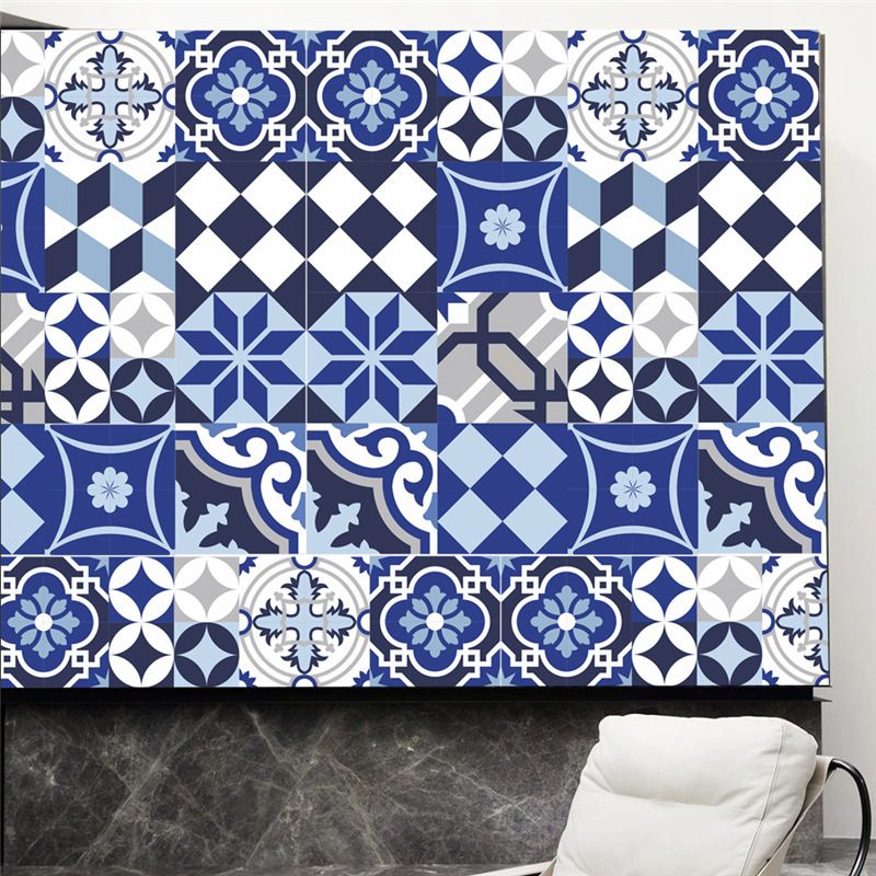 20cm X 20cm - 10 Pièces, Colle Pour Carrelage Mural, Fausse Brique, Faux Carreau De Ciment - Application Facile Et Gratuite - Teinte Bleue