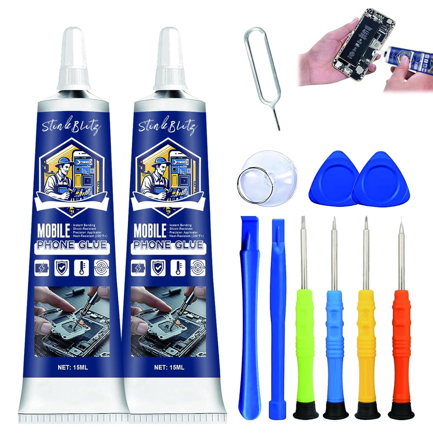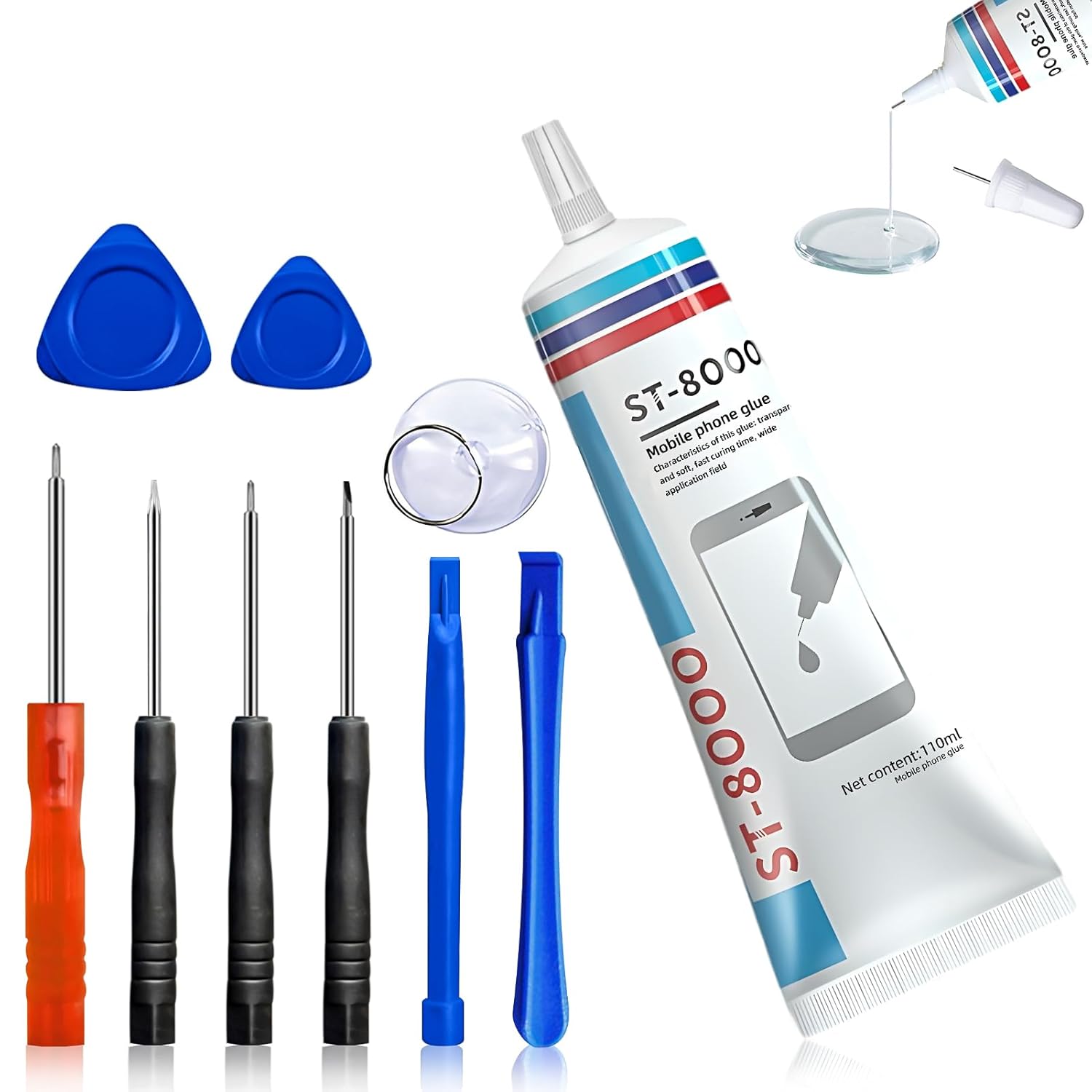 GNAUMORE Colle Telephone,Colle Ecran Smartphone,Colle Convient aux Écrans de Téléphones Portables,Colle Telephone avec des Outils de Réparation,Imperméable Colle Smartphone 110ml