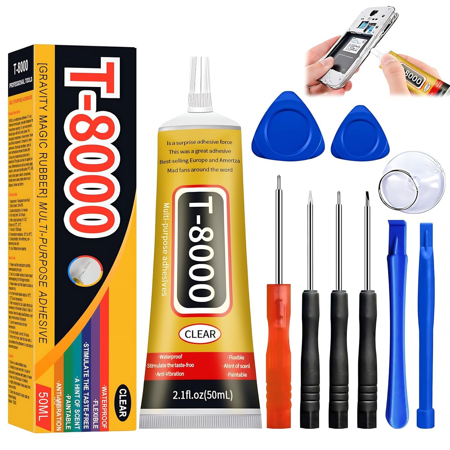 T8000 Colle Ecran Smartphone,110 ml Liquide Colle Super Multiusages Colle pour Cristal Strass DIY Fixé Téléphone Mobile Écran,Colle T8000 Transparente pour Bois Verre Tissu Céramique Métal