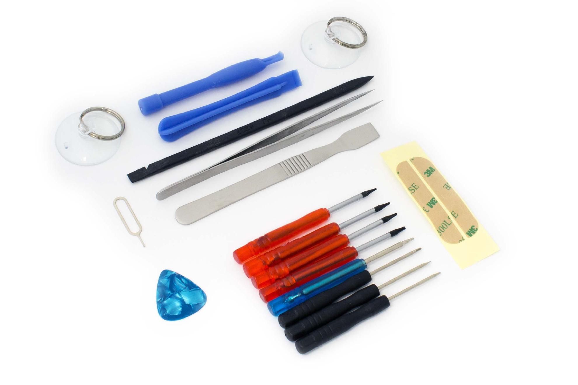 vhbw Kit d'outils de réparation pour smartphone, tablette, écran, changement de batterie - Inclus tournevis, colle, outil d'ouverture et plus