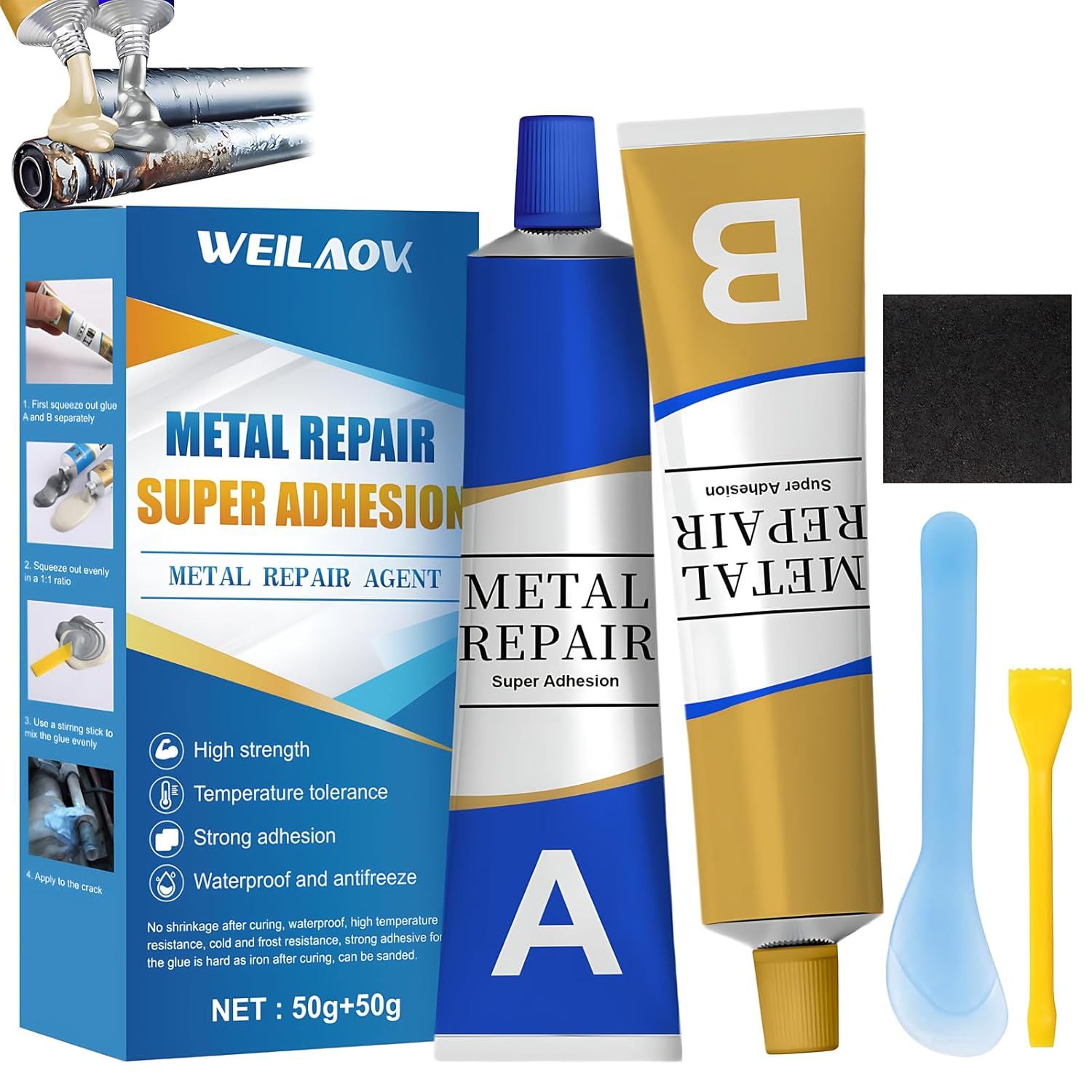 Colle Metal Extra Forte,Colle bi Composant,Colle Metal,Soudure a Froid metal,colle Extra Forte pour Réparer les Moteurs les Réservoirs D'eau,L'acier Inoxydable,50g+50g