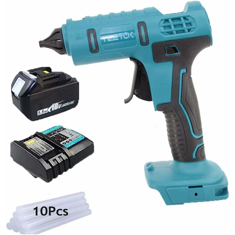 Teetok – Pistolet à colle chaude 100W avec batterie 5500mAh – Temps de chauffe 100s – Colle 11mm pour métal, cuir, bois, papier, céramique - DC18RC
