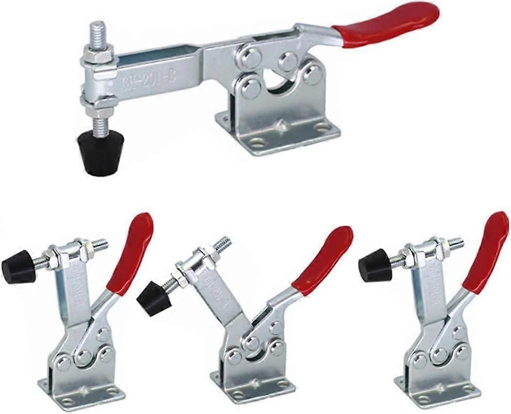 Ensemble de pinces à bascule - 4 pièces - Pince à bascule - Pince à dégagement rapide pour le travail du bois - Outils à main - Pinces à colle - Argent/Rouge - Métal - 14,2 x 5,3 cm