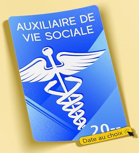 SC ® - Sticker/Autocollant - Vignette Caducée Auxiliaire de Vie Sociale - Date Personnalisable - Type de pose Vitrophanie* (se colle sur le pare-brise à l'intérieur du véhicule)