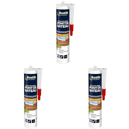 Bostik Colle et Joint Pont de Bateau – Colle Parquet – Idéale pour Bois Exotiques – Usage Intérieur – Formule MS Polymère – Sans Solvant et Sans Odeur – Noir – Cartouche 290 ml (Lot de 3)