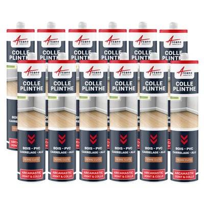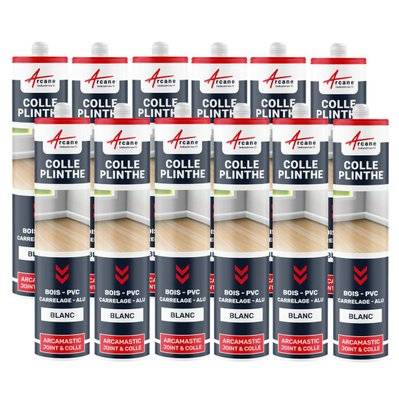 Arcane Industries Mastic Colle Plinthes bois, carrelages, parquet, marches, seuils,,, : ARCAMASTIC JOINT ET COLLE-290 ml x 12 Blanc