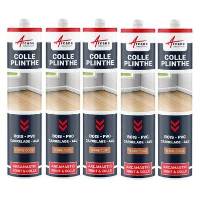 Arcane Industries Mastic Colle Plinthes bois, carrelages, parquet, marches, seuils,,, : ARCAMASTIC JOINT ET COLLE-290 ml x 5 Terre Cuite