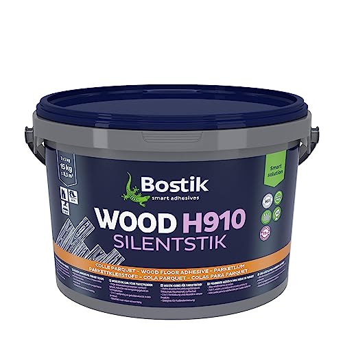 Bostik WOOD H910 SILENTSTIK – Colle Parquet Acoustique – Compatible Sol Chauffant – Parquets Massifs & Contrecollés – Affaiblissement Acoustique 19 dB Sans Sous Couche – Seau 15 kg