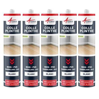 Arcane Industries Mastic Colle Plinthes bois, carrelages, parquet, marches, seuils,,, : ARCAMASTIC JOINT ET COLLE-290 ml x 5 Blanc