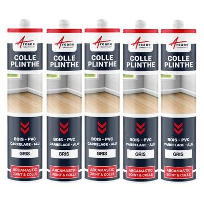 Arcane Industries Mastic Colle Plinthes bois, carrelages, parquet, marches, seuils,,, : ARCAMASTIC JOINT ET COLLE-290 ml x 5 Gris - RAL 7004