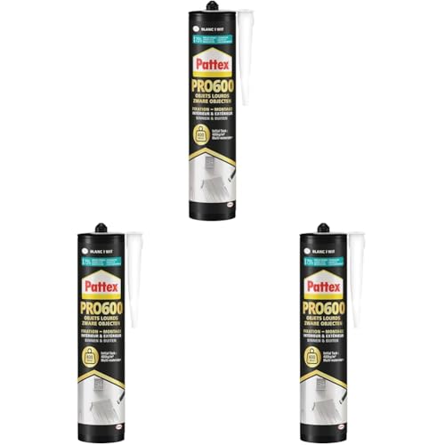 Pattex PRO600 Objets Lourds Blanc, colle forte intérieur & extérieur, colle de fixation à forte adhérence, colle tous matériaux avec maintien immédiat, cartouche 460 g (Lot de 3)