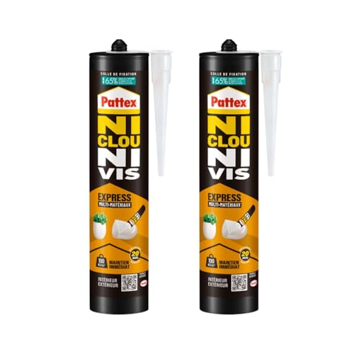 Pattex Ni Clou Ni Vis Séchage Rapide, colle de fixation express, Tous Matériaux - séchage en 20 min, colle forte résistante à l'humidité, mastic blanc, cartouche de 390 g (Lot de 2)