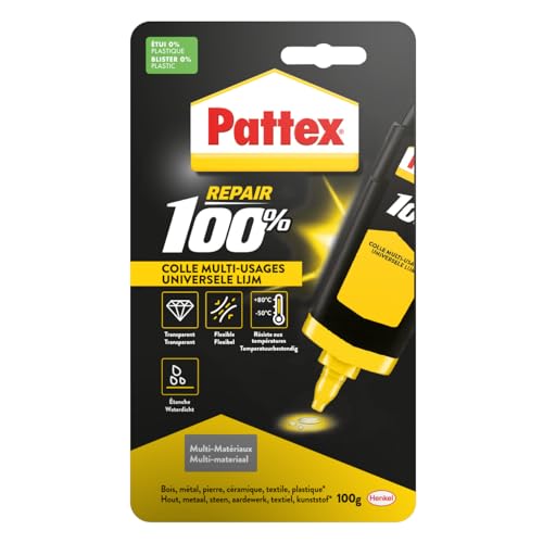 Pattex Repair 100% Colle Multi-usages, colle forte transparente pour tous types de travaux à l’intérieur et l’extérieur, colle liquide multi- matériaux, 100 g