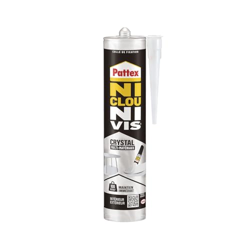 Pattex – Ni Clou Ni Vis Crystal (cartouche de 290 g) – Colle de fixation extra forte pour intérieur et extérieur – Mastic transparent multi-matériaux