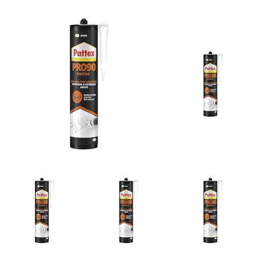 Pattex PRO90 Fixotac, Colle de Fixation Type Néoprène, tous Support, Intérieur et Extérieur, Beige, Cartouche de 350 G (Lot de 5)