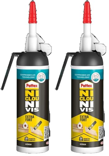 Pattex Ni Clou Ni Vis Fixation Extra Fort – Colle de Fixation multi matériaux, à maintien immédiat, se peint, utilisation en intérieur – Blanc, 133g (Lot de 2)