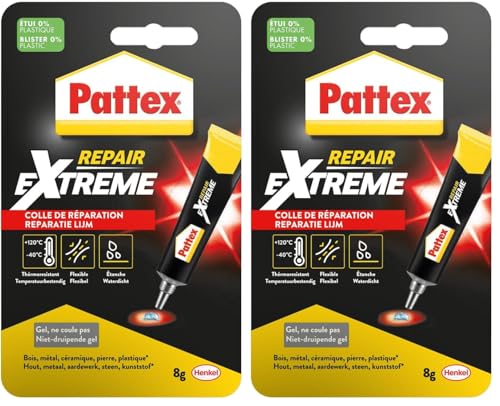 Pattex 100% Repair Extreme- Colle multi-matériaux ultra résistante en gel- tube 8 gr (Lot de 2)