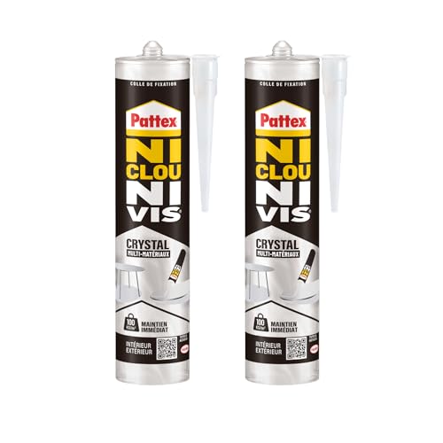 Pattex Ni Clou Ni Vis | Tous Matériaux Crystal (cartouche de 290 g) – Colle de fixation extra forte pour intérieur et extérieur – Mastic transparent multi-matériaux (Lot de 2)
