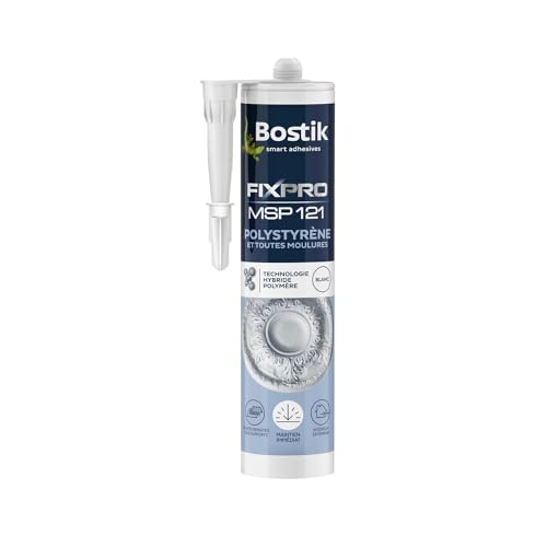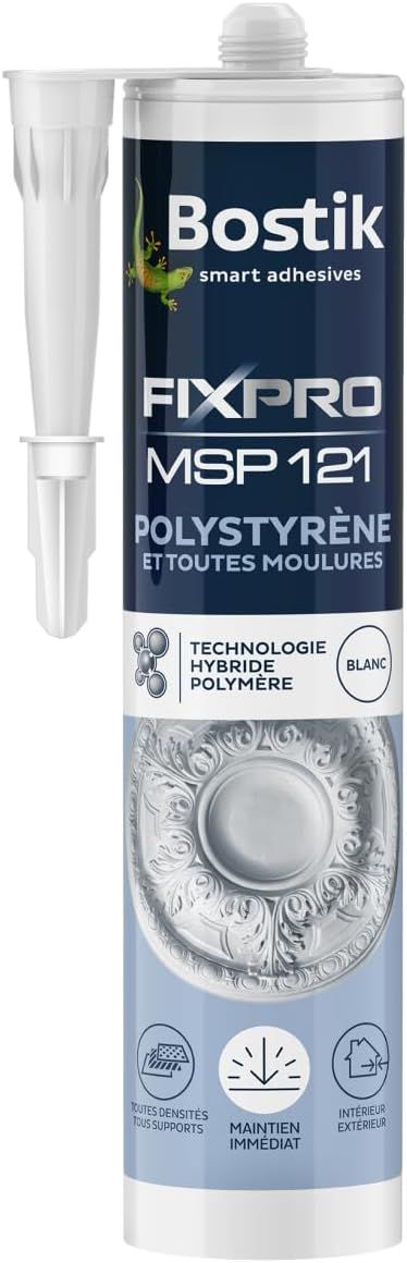 Bostik FIX&PRO MSP 121 Blanc – Mastic Colle Polystyrène et Toutes Moulures – Intérieur/Extérieur – Tous Supports – MS Polymère – 290 ml