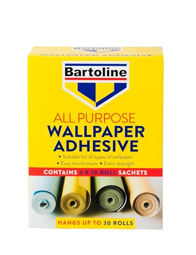 olle à papier peint Bartoline 10 rouleaux (12 pintes) – colle à base d’amidon de qualité, facile à mélanger, pour tous papiers peints, vinyle, texturés, carreaux polystyrène, durable.