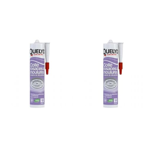 Quelyd Colle Rosaces, Moulures et Objets de Décoration - Pour Polyuréthane et Polystyrène - Tous Supports - Prise Rapide 10 Secondes - Blanc - 1 Cartouche 310 ml (Lot de 2)