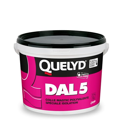 Quelyd DAL 5 – Colle Polyvalente Spéciale Isolation – Haute Adhérence, Sans Coulure, Pour Revêtements Muraux épais, Polystyrène, Liège – Intérieur, Pièces Humides – Sceau de 6.5 kg