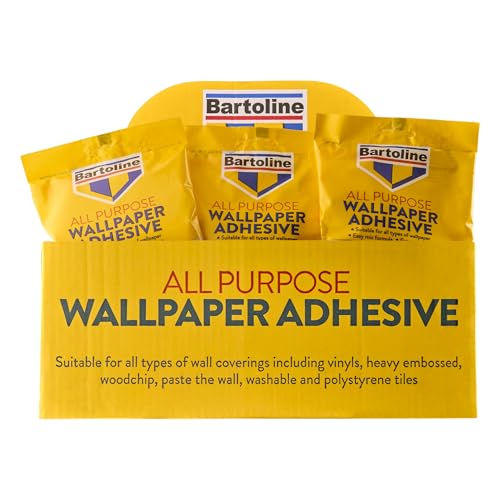Colle à papier peint Bartoline 5 rouleaux (6 pintes) – adhésif à base d’amidon, facile à mélanger, pour tous papiers peints, vinyle, texturés, carreaux polystyrène, résultats durables.