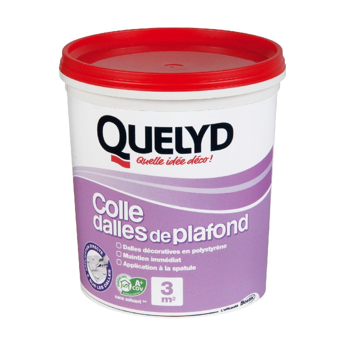 Quelyd Colle Dalles de Plafond Polystyrène – Colle en Pâte Prête à l'Emploi pour Dalles, Poutres, Moulures et Panneaux Isolants Légers – Intérieur – Sans Solvant – Blanc – Seau de 1 kg (3 m²)