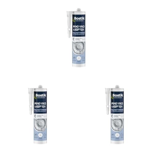 Bostik FIXPRO – Mastic Colle Polystyrène et Toutes Moulures MSP 121 – Intérieur/Extérieur – Tous Supports – Mastic Hybride Polymère – Couleur : Blanc – 1 Cartouche 290 ml (Lot de 3)