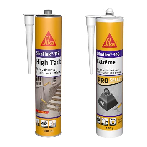 SIKA - Colle polyuréthane puissante - Pour fixation d'objets lourds - Intérieur et extérieur - Blanc - 300ml + Mastic Silicone pour joint de menuiserie & vitrage - Multi-supports - Transparent - 300ml