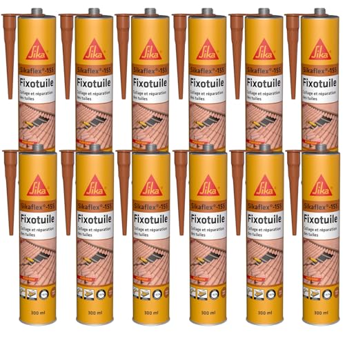 SIKA - Mastic-colle souple polyuréthane - Sikaflex-155 Fixotuile Purform terre cuite - Réparation et collage de tuiles - Tous types de tuiles - Carton de 12 cartouches de 300ml