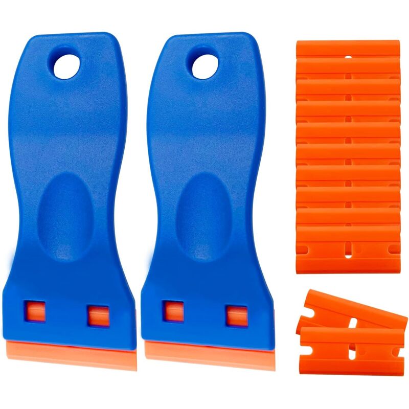 2 Grattoir Plastique avec 100 raclettes, Long Manche Grattoirs, pour Enlever les étiquettes, a colle, la peintureAutocollants et décalcomanies,bleu