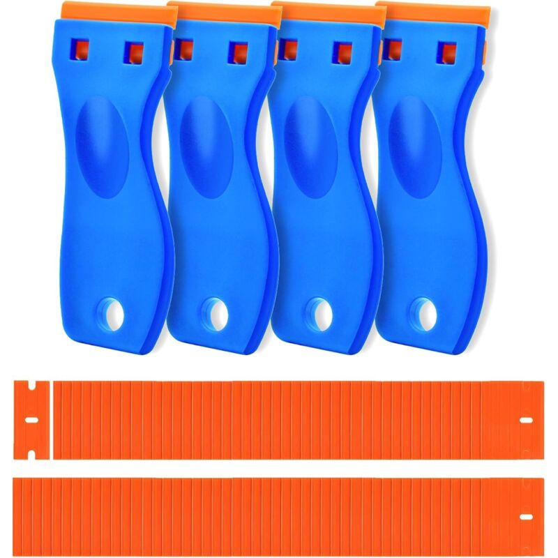Grattoir en plastique en 4 parties et 120 lames, dissolvant d'autocollants, idéal pour gratter le plastique, enlever la colle des appareils de