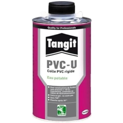 TANGIT Colle PVC U Eau Potable, colle pour tuyaux en PVC rigide, colle pour raccord de canalisations -Boite 1 kg avec pinceau applicateur