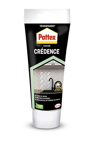 PATTEX Colle Fixation crédence pour crédence en verre, inox, carrelage, émail, aluminium - s'utilise en intérieur et en extérieur - tube de 216g