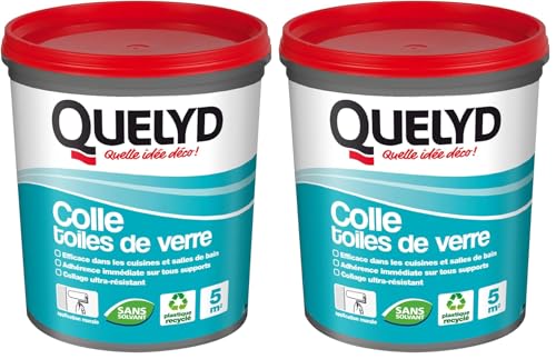 Quelyd Colle Toiles de Verre – Colle Fibres de Verre Prête à l'Emploi – Tous Supports Muraux – Toutes Pièces dont Cuisines et Salles de Bain – Sans Solvant – Pot de 1 kg (5 m²) (Lot de 2)