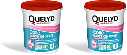 Quelyd Colle Toiles de Verre – Colle Avec Indicateur Coloré – Prête à l'Emploi – Tous Supports Muraux – Toutes Pièces dont Cuisines et Salles de Bain – Sans Solvant – Pot de 1 kg (5 m²) (Lot de 2)