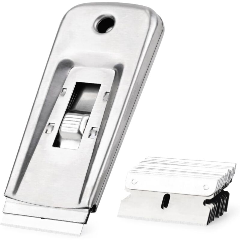 SUBZONAL-Métal Grattoirs, Verre Grattoir Vitrocéramique Plaque Grattoir avec 10 pièce Lames Métallique, pour enlever Les étiquettes, a Colle, décalcomanies Autocollants et Plus