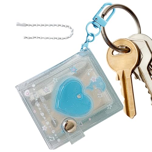 Mini album porte-clés - livre collection carte design cœur, porte-clés transparent et brillant avec 24 poches, pour photo de 5 cm, école, Noël et voyage