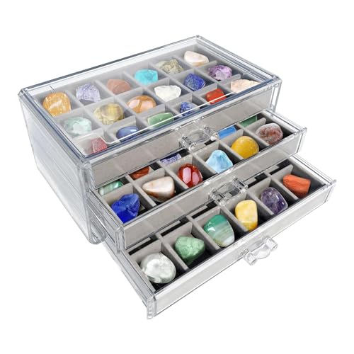 Vitrine de pierres précieuses,vitrine de roches,Boîte de collecte en acrylique transparent à 54 emplacements | Vitrine visuelle en acrylique à 3 couches, élégante collection Rock, pour la fête des , l